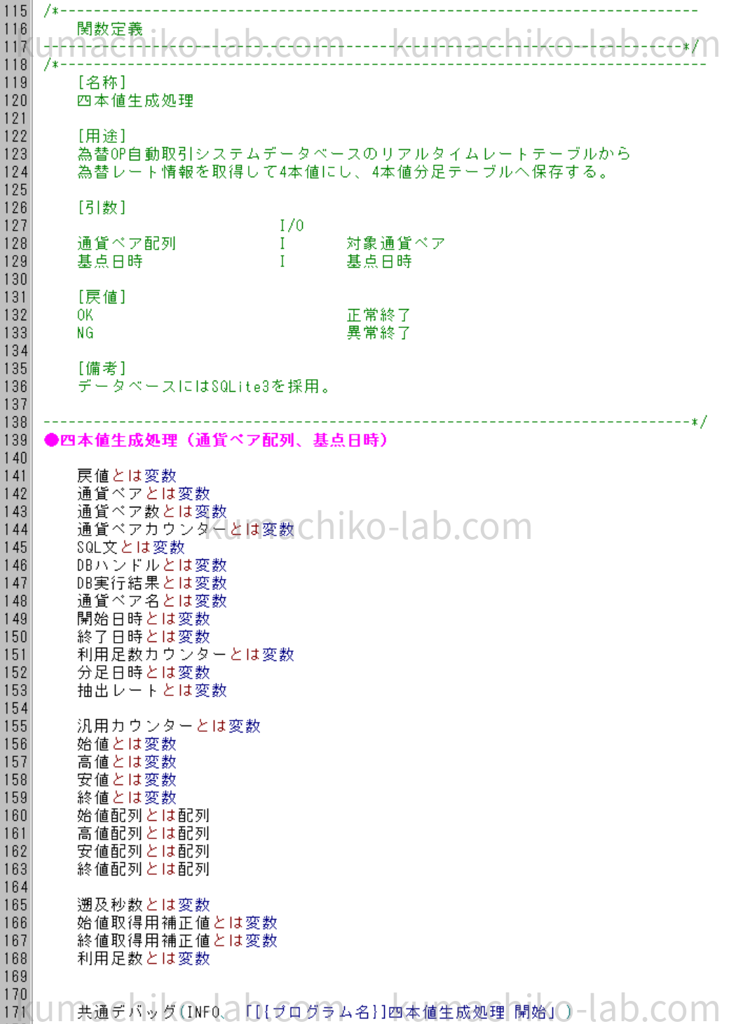 一部抜粋。仕様書のようなものを書けばと言っているものの、プログラムコードっぽいかも・・・。